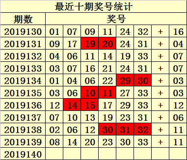 ![]() 最近十期(第2019130期-2019139期)开出3次以上的红球:06 31 33;