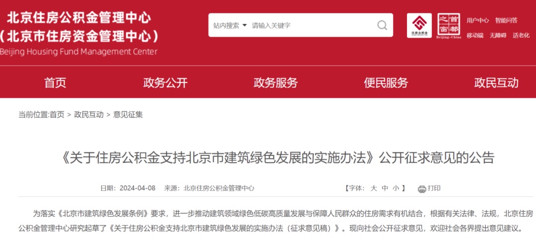 证券时报网 北京购房政策又有新变化。 4月8日,北京住房公积金管理中心对《关于住房公积金支持北京市建筑绿色发展的实施办法》公开征求意见。其中提出,购买二星级及以上绿色建筑、装配式建筑或超低能耗建筑,住房公积金最高贷款额度可上浮,最高可上浮40万元,最高贷款额度不超过160万元。 记者梳理发现,近日,湖南湘潭、贵州黔南州、安徽宿州、内蒙古自治区鄂尔多斯等多地密集调整优化了住房公积金政策。据中指研究院不完全统计,截至4月7日,2024年各地已出台公积金相关政策约70条。 业内人士认为,优化公积金政策仍是近两年各地支持房地产市场发展、促进需求释放的主要手段之一,公积金政策的优化调整有利于降低置业成本,减轻购房者置业压力,提振购房者置业情绪。 北京拟出住房公积金新政 4月8日,北京住房公积金管理中心对《关于住房公积金支持北京市建筑绿色发展的实施办法》公开征求意见。 其中提出,支持使用贷款购买二星级及以上绿色建筑。对于申请贷款购买二星级、三星级绿色建筑的借款人,最高贷款额度分别上浮20万元、30万元。 同时,支持使用贷款购买装配式建筑。对于申请贷款购买A(BJ)级、AA(BJ)级、AAA(BJ)级装配式建筑的借款人,最高贷款额度分别上浮10万元、20万元、30万元。 另外,支持使用贷款购买超低能耗建筑。对于申请贷款购买超低能耗建筑的借款人,最高贷款额度上浮40万元。 新政明确,限定贷款最高上浮额度。同时满足多个适用条件的借款人最高贷款额度上浮金额可累加,最高可上浮40万元,即最高贷款额度不超过160万元。 对于新政起草的背景,北京住房公积金管理中心表示,2024年3月1日正式实施的《北京市建筑绿色发展条例》明确要求,个人使用住房公积金贷款购买二星级以上绿色建筑、装配式建筑或者超低能耗建筑的,可以给予适当政策支持。为贯彻绿色发展理念,落实《条例》要求,公积金中心研究起草了《征求意见稿》,旨在推动建筑领域绿色低碳高质量发展与保障人民群众的住房需求有机结合。 中指研究院市场研究总监陈文静指出,此前,住建部部长倪虹多次强调要“下力气建设好房子”,鼓励企业研发好产品、好材料、好设备,鼓励多行业跨界协同合力建造绿色、低碳、智能、安全的好房子。本次北京政策提到的绿色建筑、装配式建筑或者超低能耗建筑可以说就是好房子的体现,北京加大公积金贷款支持力度鼓励购房者购买绿色、低碳、智能、安全的好房子,也将有利于促进更多开发企业建设高品质住房。 陈文静表示,近几年北京住宅用地出让时要求开发企业承诺项目要满足绿色建筑二星级标准、采用装配式建筑且装配率达到60%等要求,部分地块还要求参与现场摇号的竞买人须提交《高标准住宅建设承诺书》,整体对建筑标准提出了更高的要求。由此可见,近几年北京成交的住宅用地基本上是二星级及以上绿色建筑,因此本次北京公积金政策支持的范围较广,当前新房项目普遍满足条件,符合条件的二手房也在本次公积金支持范围内。 多地住房公积金新政密集出台 据记者不完全统计,近日,湖南湘潭、贵州黔南州、安徽宿州、内蒙古自治区鄂尔多斯等多地密集调整优化了住房公积金政策。 4月1日,“鄂尔多斯住房公积金”微信公众号发布住房公积金新政,政策优化后,单方缴存职工最高贷款额度由50万元上调至60万元,夫妻双方缴存职工最高贷款额度由80万元上调至100万元;高层次人才最高可贷200万元;购买绿色建筑最高贷款额度上浮10%;三孩家庭单方最高贷款额度由60万元上调至66万元,夫妻双方由100万元上调至110万元;贷款申请金额倍数由20倍提高到25倍;借款人提前部分还款最低还款额度由不少于贷款总额的20%下调至10%;此外,还推出住房公积金和商业银行的组合贷。 3月31日,“宿州发布””微信公众号发布了《关于调整住房公积金使用政策的通知》,其中提出,提高租房提取额度;允许父母自愿提取公积金支持子女购房;继续执行提取住房公积金用于支付新房首付款政策;放宽二手房贷款房龄限制,房龄由20年放宽至30年;继续执行缴存职工单方最高可贷额度45万元,夫妻双方最高可贷额度65万元;继续执行“商转公”政策;继续执行“组合贷款”政策。 3月29日,“湘潭市住房公积金管理中心”微信公众号发布《关于调整部分住房公积金缴存和使用政策的通知》,其中提出,取消“灵活就业人员缴存住房公积金需缴纳灵活就业人员基本养老保险费1年(含)以上”的限制条件;提高贷款额度计算公式中的个贷倍数;提高保底贷款额度;符合条件的全日制大专学历以上大学毕业生公积金贷款额度按可贷额度上浮30%;二孩家庭最高可贷额提高至80万元。新政自2024年4月1日起实施。 3月29日,黔南州公积金管理中心发布《关于适时优化调整住房公积金政策的通知》,其中提出,支持大学毕业生首次购买自住房,贷款额度可上浮10%,最高贷款额度55万元;支持青年人才首次购买自住房,最高贷款额度60万元;取消异地公积金贷款户籍限制;调整二手房贷款期限和房龄,之和最高年限可至50年;优化提取公积金提前部分或全部结清商业住房贷款业务办理;支持未婚子女购当地首套自住房提取父母公积金或父母购当地首套自住房提取未婚子女公积金等。本次政策调整自2024年4月1日起施行。 陈文静表示,优化公积金政策仍是近两年各