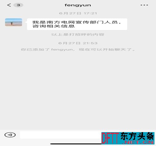 该文发出后的当天下午5时许,有自称是南方电网宣传部门人员,加法讯君为好友,欲咨询相关信息。