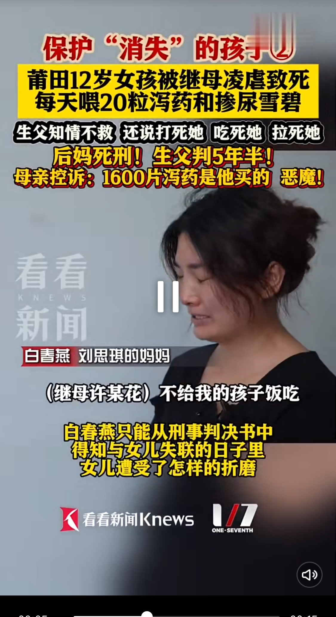 她说,继母教唆她的养子轮流殴打孩子,不给孩子吃饭,还要强行让她每日吃下20片的泻药。而这1600片泻药都是孩子生父购买,他才是真正的恶魔。