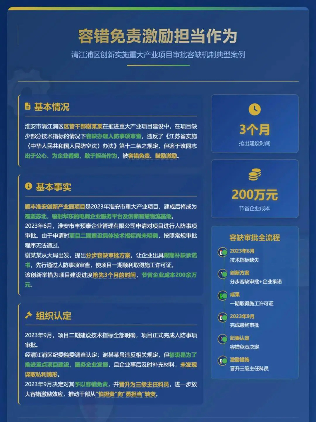 「原标题:江苏通报一干部违规审批,但出于公心、为企业着想,被容错免责并获晋升」