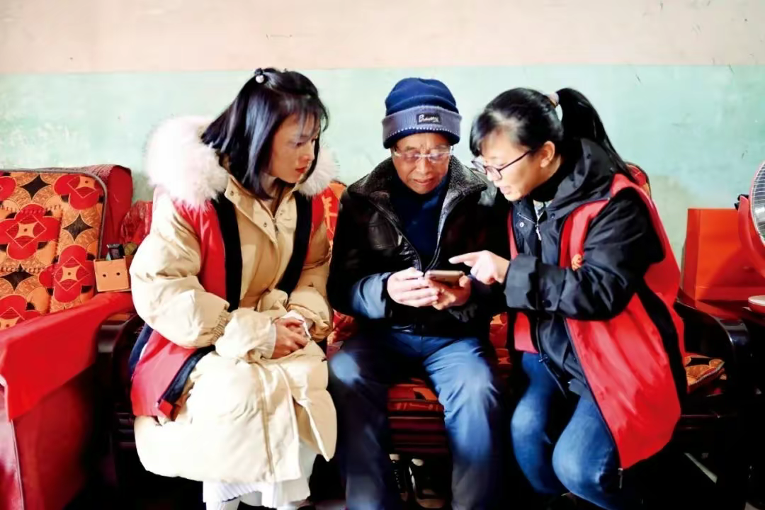 2023年12月22日,江西抚州市金溪县秀谷镇,志愿者在仰山社区居民家中帮老人激活电子医保卡。图/中新
